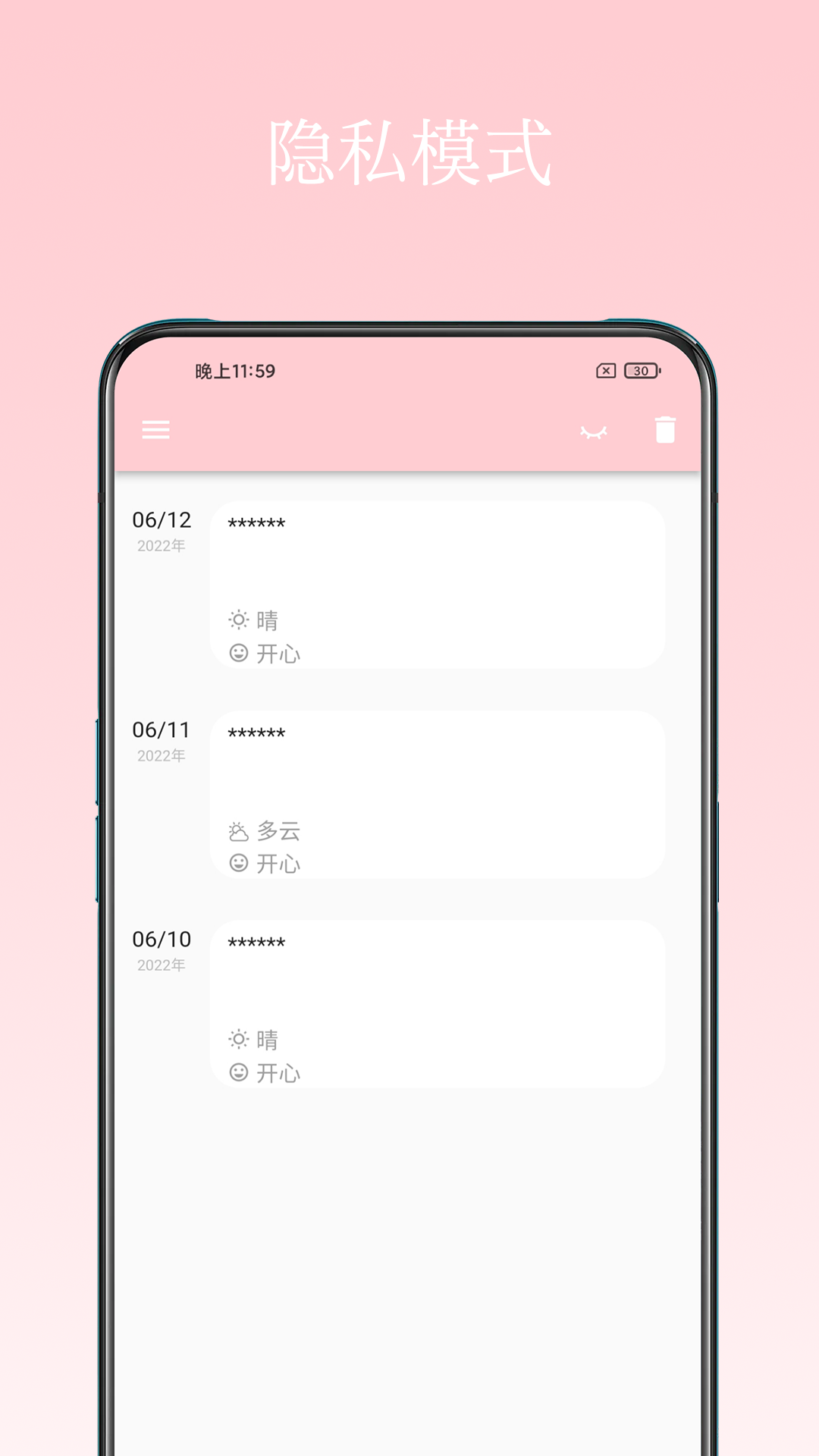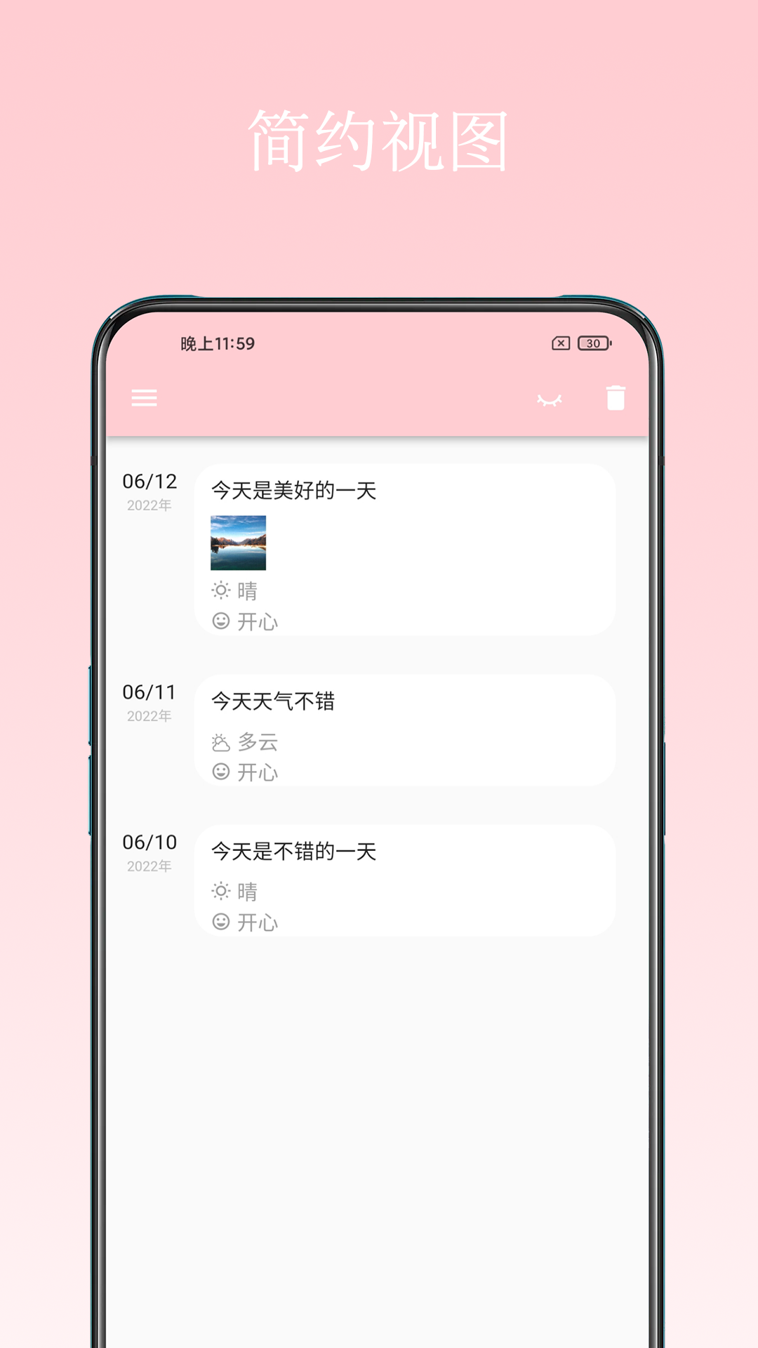 日记小本是一款功能强大的日记笔记软件,软件有丰富的功能,可以记录自己想要写的内容,拥有多种记录方式,还能记录天气信息,有多种主题颜色,用户可以自己选择,可以根据日记内容、天气等对日记进行搜索,实时保存当前编辑进度,下次可以继续编辑,能够每天在这里记录自己生活趣事,还能设置应用的密码锁,保护自己的隐私。