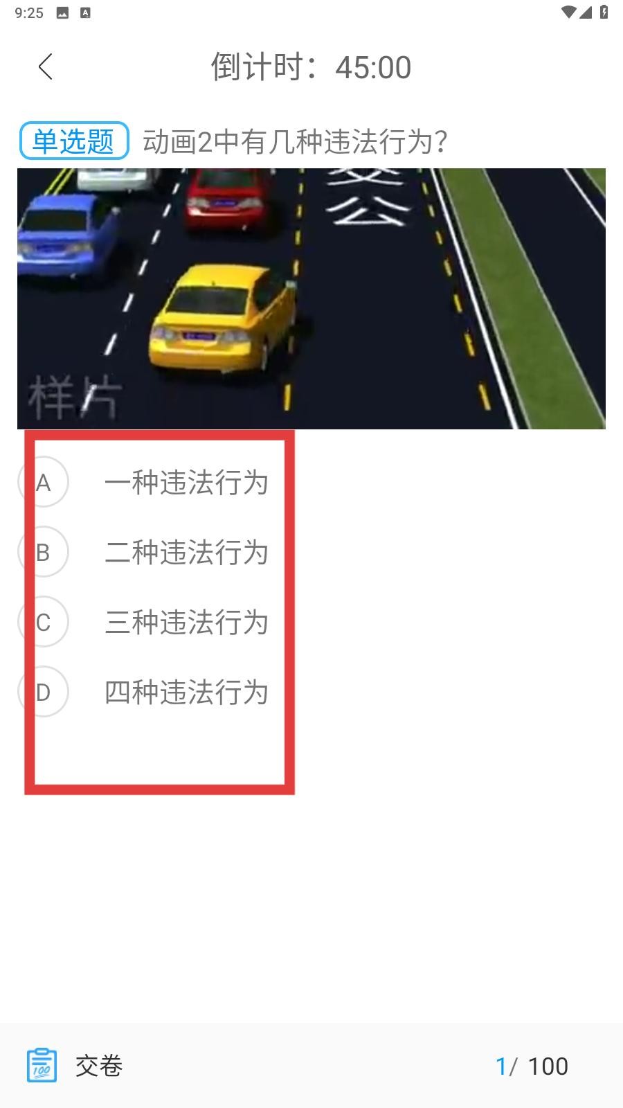 3、进入考试页面后,根据给出的题面,进行浏览或阅读,给出正确的答案,点击选项就行了。