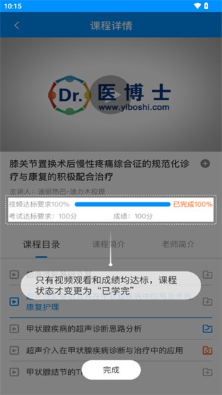 5、只有视频观看和成绩均达标,课程状态才变更为“已学完”
