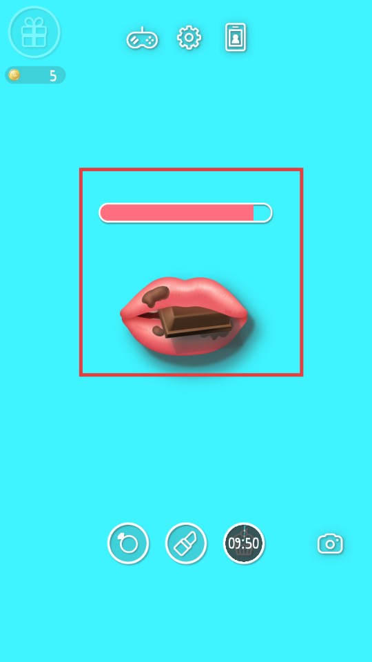 4、嘴唇吃完巧克力后,点击获取金币奖励,积累货币。