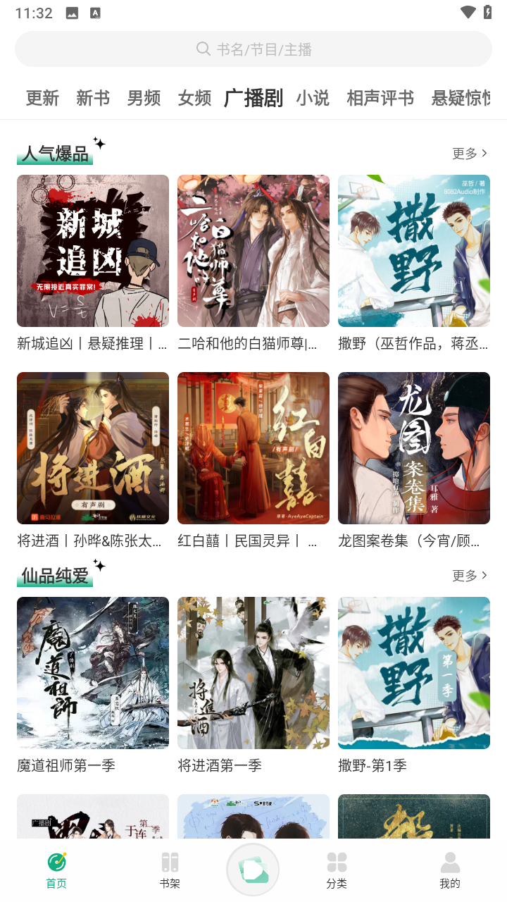 1.打开软件可以看到首页上方有着推荐、最新、新书、男频、女频、广播剧等板块内容。