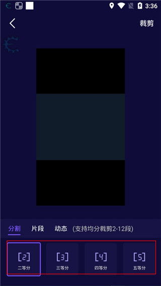 3、进入裁剪界面可以看到“分割”,这个可以按照自己的想法进行等分分割。