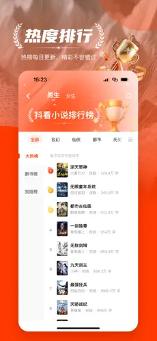 4、小说类别丰富,涵盖了男性和女性部分,以及幻想、奇幻、城市、历史和游戏竞赛等多个子类别。