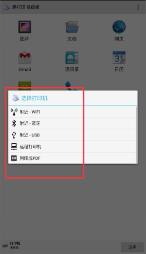 2、可通过WiFi、蓝牙、USB或互联网选择打印机;