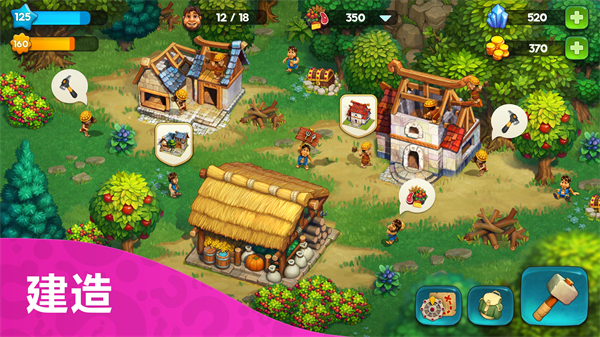 部族是一款模拟建造类游戏,在游戏中,你会和一群爱好和平的原始人一起建造,可以通过积累资源来解锁地图,还能帮助周边的部族首领,有效抵御其它部落力量的冲突,随着游戏的升级,部族中的人口也会越来越多,可能遭受其他部落的攻击,所以要组织部落的成员进行武装装备和武装训练,游戏给玩家提供了各种各样的物品和素材,通过强化设置来得到强大的能力。