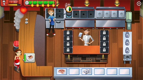 4、玩家可以通过解锁更多关卡和挑战,获得丰富的奖励和成就,提升自己在餐饮业的声誉和地位。