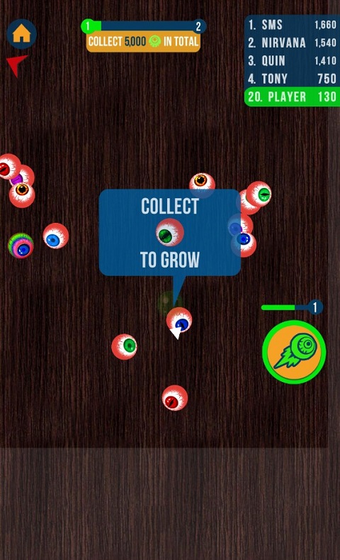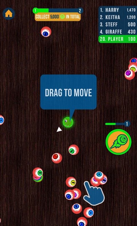 2、滑动屏幕,即可自由移动,通过收集中立眼球,壮大自己。