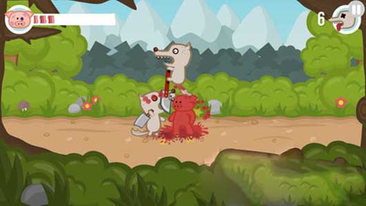 2、趣味场景设计:细致有趣的场景设定,融入独特的画面元素,让小猪与狼群的战斗场景既紧张又不失趣味。