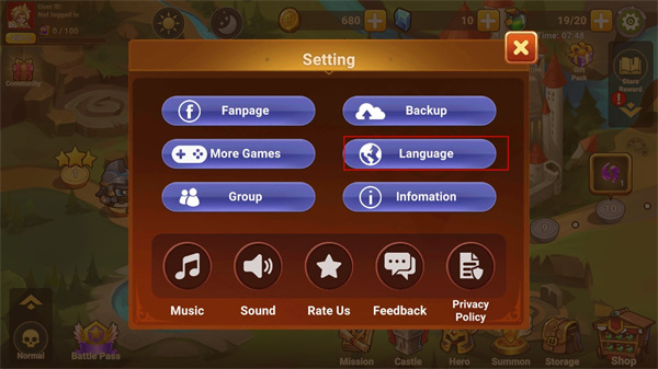 1、下载安装游戏后,完成新手教程来到游戏主界面,找到右上角的设置图标。