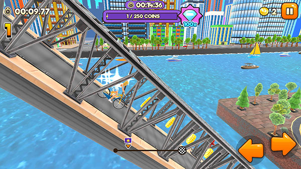2、随着游戏的进行,玩家会遇到更多的挑战,你能够解锁不同的自行车,它们也是有属性区别的。