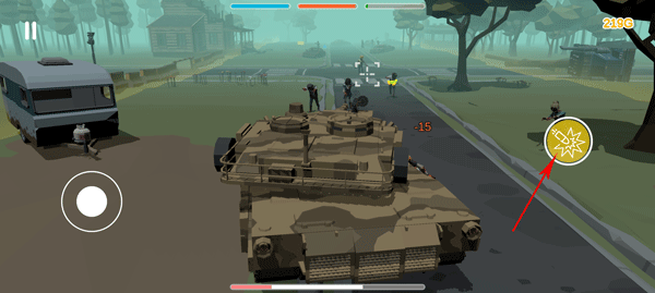 3、右下角黄色小圆圈,点击开火打击僵尸。