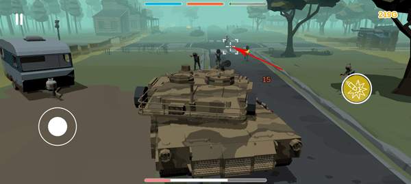 2、中间白色款款拖动可以瞄准僵尸;