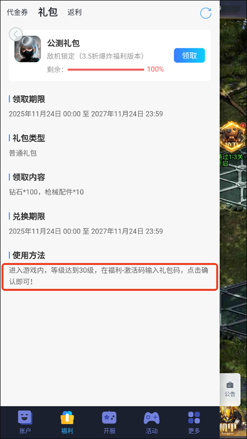 1、进入游戏内我们点击小弹窗,然后选择礼包。