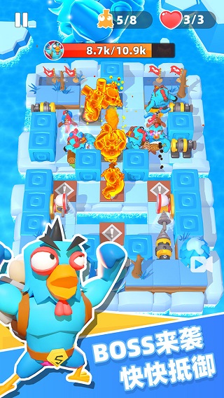 小鸡别嚣张是一款非常有趣的闯关游戏,游戏操作简单,只需要点击手机屏幕就能完成,要充分利用自己的策略来击败敌人,合理地制定策略,还能解锁更先进的武器和科技,可以合并升级炮塔,画风为小清新风格,能够带给你优质的视觉体验,还有丰富独特的地图场景可以解锁,无论你是战场新兵还是塔防大神,都能带给不一样的体验,给玩家不一样的塔防玩法。
