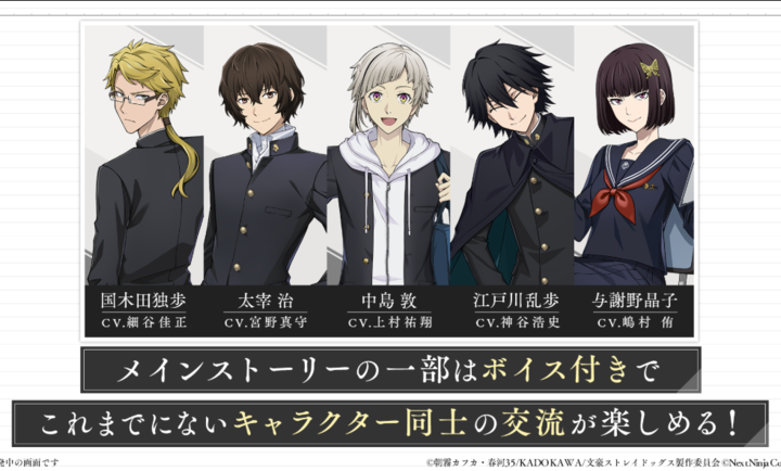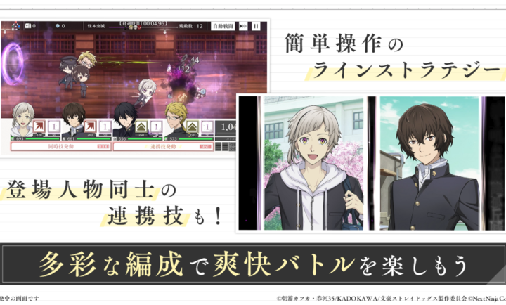 《学园文豪Stray Dogs日服》是一款根据热门人气动画《文豪野犬》进行官方改编而来的好玩有趣的二次元角色扮演游戏。游戏中,玩家们将穿越到《文豪野犬》的世界,并在这里邂逅多样的美型的各种文豪,与他们产生各种各样的故事。游戏忠实还原了动画中的人物形象,有各种高人气角色等待玩家们来邂逅,如太宰治、中原中也、中岛敦、芥川龙之介、江户川乱步等等。游戏玩法也十分轻松好上手,只需要消除同样的珠子即可。