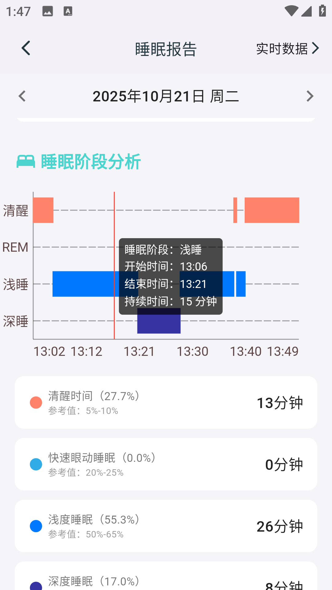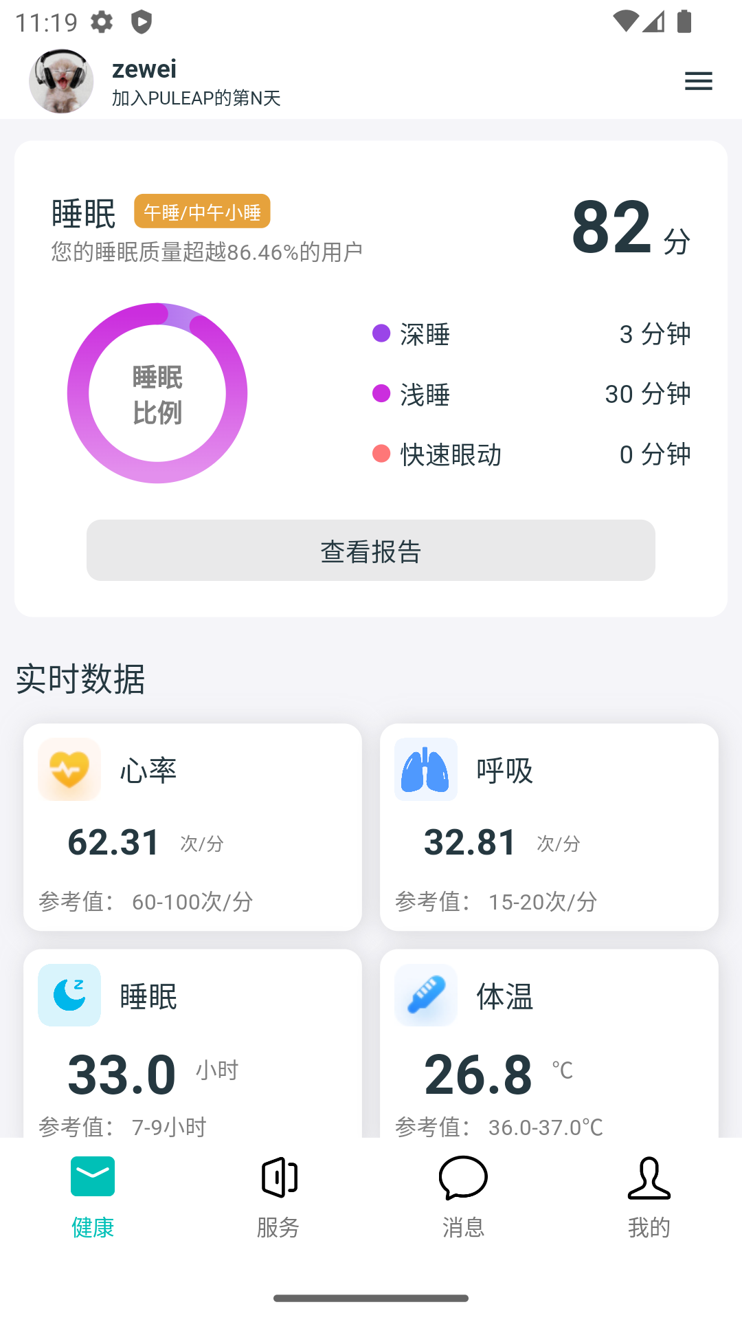 实时监测用户每天的睡眠时长,用户可在查看了解自己的睡眠总时长,了解自己的睡眠健康情况。