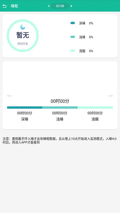 2、在当前页面就能了解自己在睡眠期间的睡眠质量了,不过要注意的是需要晚上10点佩戴手环入睡,才能获取睡眠数