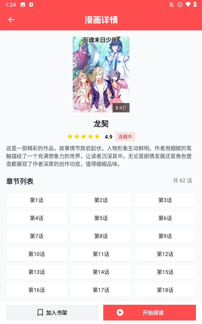 漫蛙2是一款专注于漫画阅读的软件,平台上拥有超多正版版权的漫画资源,题材涵盖了热血、奇幻、爱情、悬疑、校园、古风等多个方向,为用户提供了丰富的选择,不怕自己找不到想看的。漫蛙2对热门与连载作品的更新节奏把控得较好,每周都会按时推送新章节内容,紧贴网络进度,让用户可以第一时间继续追更,不用担心错过关键剧情。同时,平台在内容整理上逻辑清晰,新老作品区分明确,整体阅读氛围偏向纯粹,适合长时间沉浸式阅读。