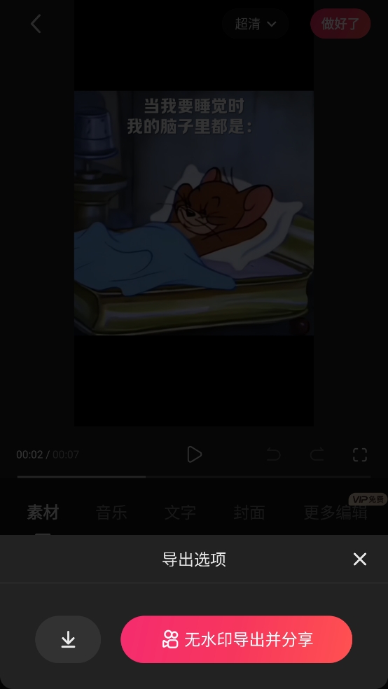 6、点击做好了就能看到弹出的保存方式,支持直接下载保存或者无水印导出并分享。
