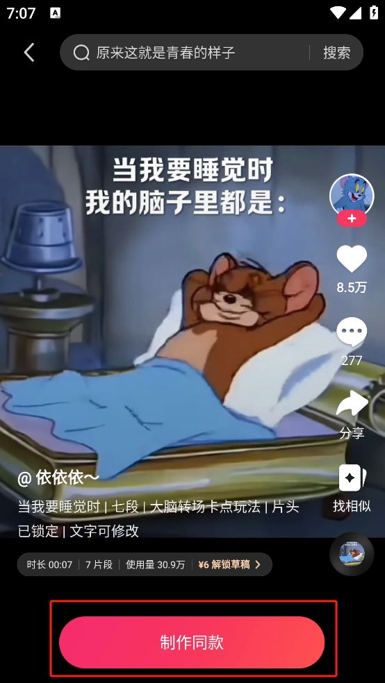 3、点击制作同款就能够快速的使用该模板进行视频的制作,使用起来也是非常的方便;