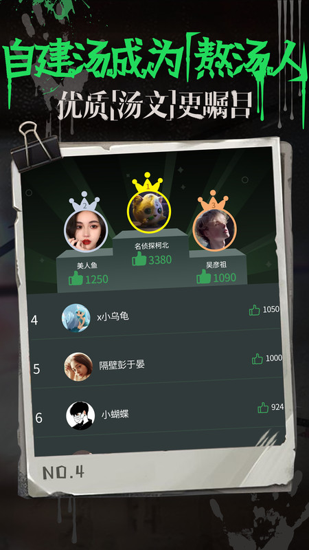 海龟汤是一款情景推理社交软件,发起人给出故事开头和结尾,由游戏参与者猜出故事过程。对比剧本杀的繁重、冗长的剧本,海归汤的剧本仅有简单的几行字,更加简单易上手,但涵盖剧情侧,恐怖侧,极限脑洞侧,强逻辑侧,文字侧,脑筋急转弯侧等丰富种类。海龟汤需要你大胆开发脑洞,寻找文字里的蛛丝马迹,破解谜题,是一款适合聚会娱乐的优秀软件。