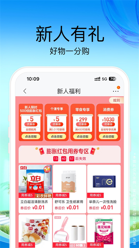 3、省钱购:每日精选爆款,9.9元抢购,天天秒不停,爆款低至五折!