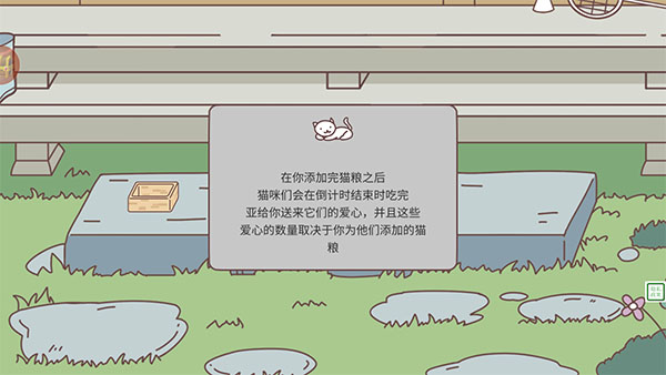5、别忘了你可爱的小宠物,每天都要记得喂它呀。在你添加完猫粮之后,猫咪们会在倒计时结束时吃完。还会在吃完之后给你送来它们的爱心哦。