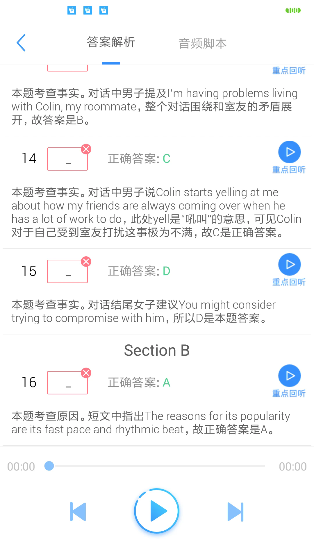 对所有的听力习题进行了解析说明,用户阅读解析即可掌握正确的答题思路;