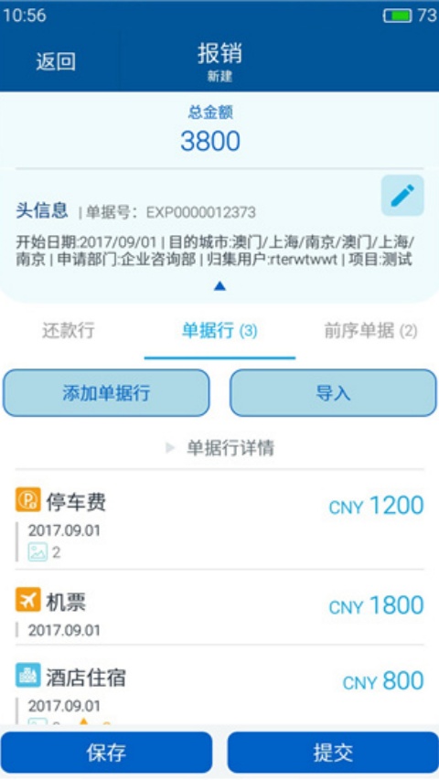 4、随时随地建报销,无论你在哪,应用提供了没有网络时也可以新建单据,存储单据,可以在有网络的情况下一键提交,更加高效和节约时间的去报销,再也不需要为报销发愁。