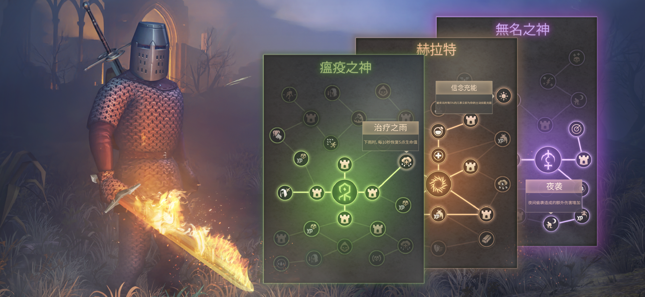 建造工作台,制作新资源,发现新设计,创建现实的中世纪武器和铠甲,同瘟疫之地最危险的居民战斗。