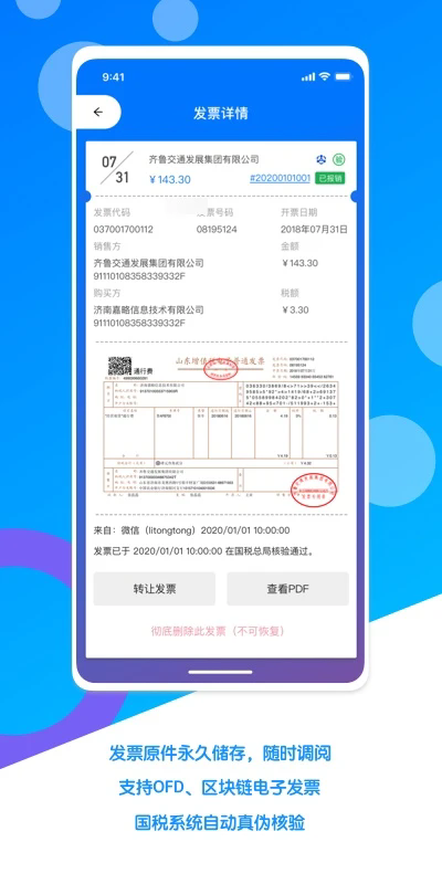 能够通过平台轻松管理不同的发票,用户能够轻松保存管理更多重要的发票;
