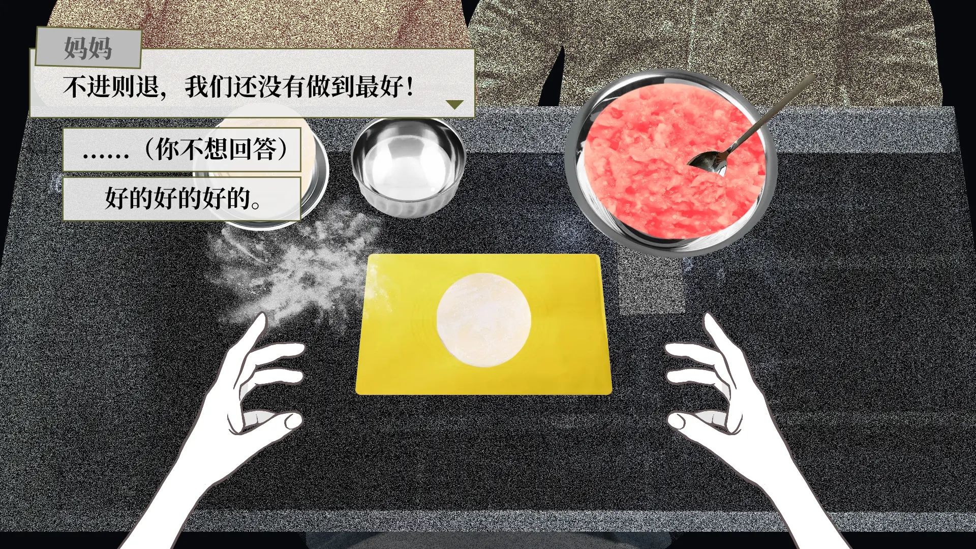 《大家一起bug饺子》是一款十分具有中式家庭味的AVG文字视觉小说游戏。游戏中再现了典型又压抑的东亚式家庭教育。玩家们需要扮演主人公,与自己的父母在一起包饺子,并且与他们一起聊天。游戏中展现了许多爱与束缚的主题。通过超真实的氛围描写,让玩家仿佛亲身经历一段压抑又真实、绝望的同时又充满爱的家庭氛围。游戏玩法简单,玩家们只需要点击屏幕,通过对话来推动剧情,玩家们的选择将直接影响家庭关系和结局走向。