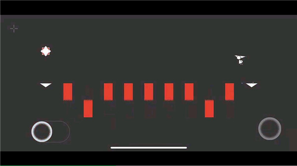 7、第七关,先跳起,触碰上方开关,等待机关出现,向下跳跃激活下方机关,之后将中间和右边的白圈激活即可开启全部机关,然后正常过关即可。