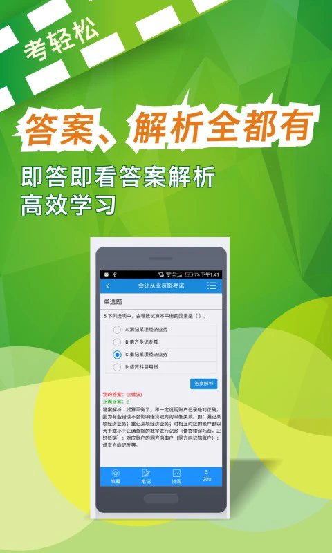 考轻松是一款专业的备考软件,软件涵盖了多个考试的资源,比如主治医师、临床三基、会计从业等,提供了多种刷题模式,在线就可以非常好的刷题,全方位了解考试内容,提前做好考试准备,还有详尽的学习报告,能够知道自己的具体学习情况,汇集章节练习中的错题,及时查漏补缺,通过多样化的学习方案,找自己所需要的材料,提高线上备考的效率。