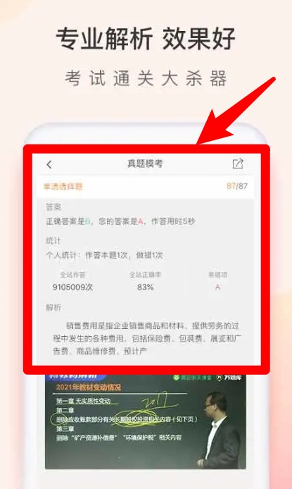 2、进入“真题模考”后可查看答题记录、正确率与解析内容,系统自动统计你的答题表现。