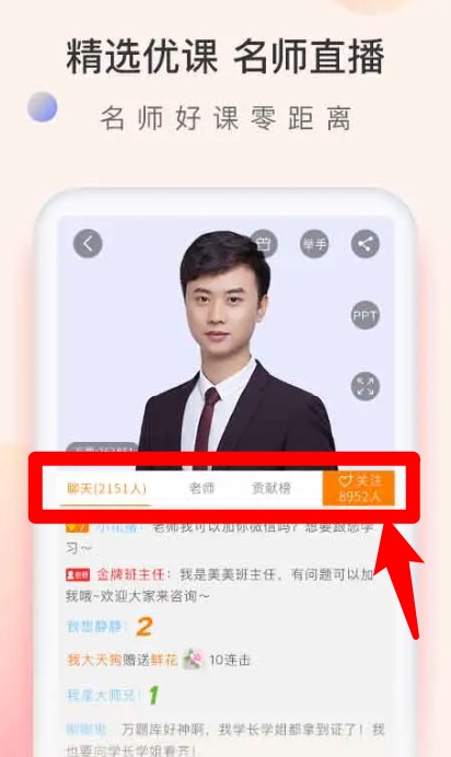 3、在名师直播课程中可参与实时互动、发言或关注老师,提升学习效果与交流机会。