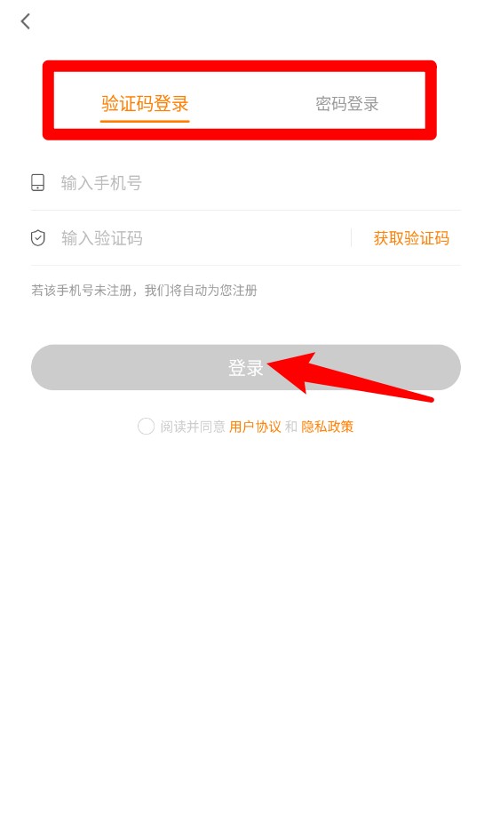 1、打开应用后可选择“验证码登录”或“密码登录”方式,输入手机号和验证码后点击“登录”。