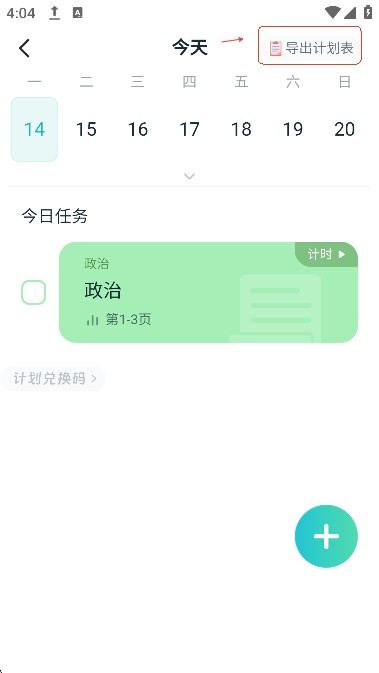 用户们定制好计划后,可以点击右上角的“导出计划表”方便之后每天按照计划学习