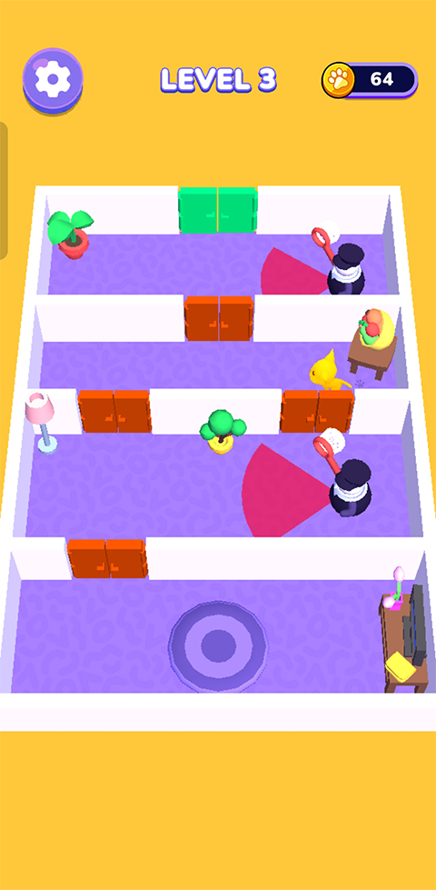 结合潜行、机关互动与变身能力,玩家需灵活运用道具与策略,躲避保安、破解陷阱,逐步解锁迷宫出口。
