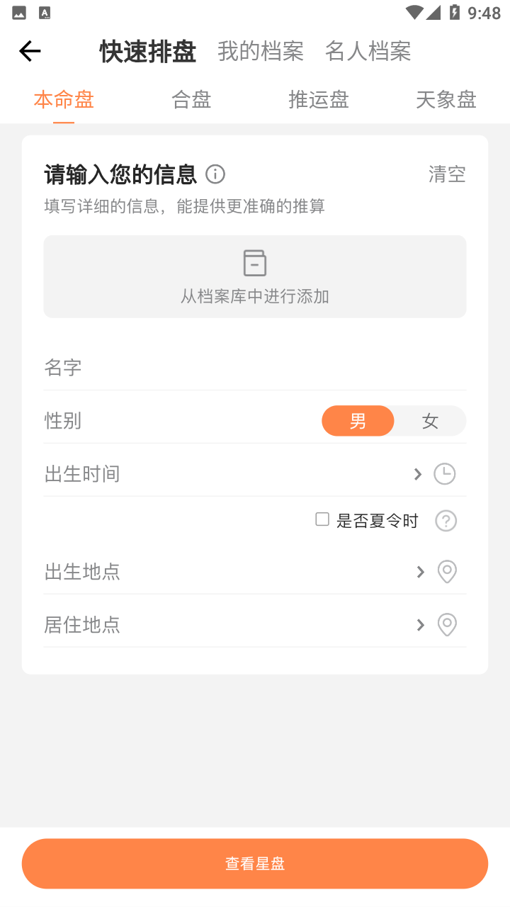 2、丰富全面的星盘支持:本命、各种推运、合盘与合盘推运,应有尽有