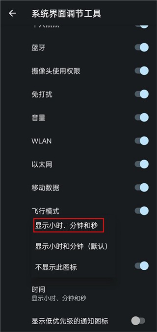 3、下划找到时间,选择显示小时、分钟和秒。