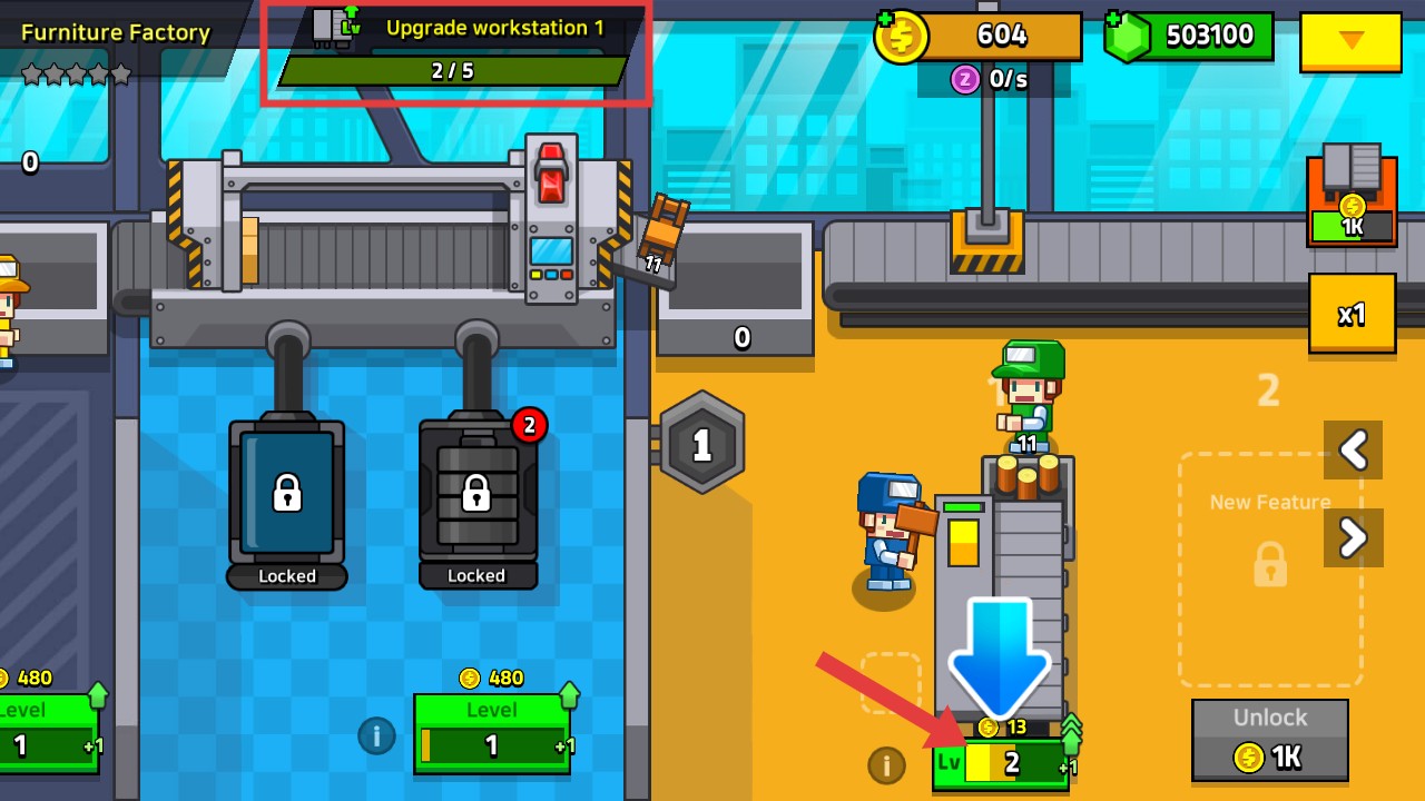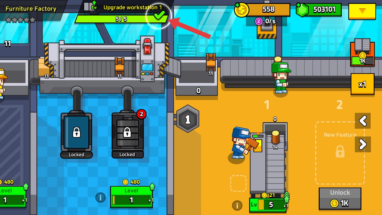 1、玩家进入游戏后,根据方框内任务点击指标位置进行升级机器即可。
