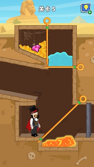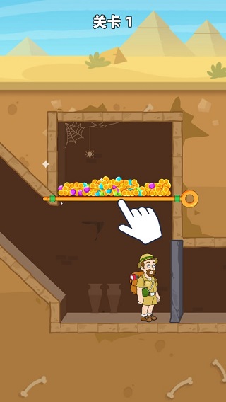 《Pull Him Out》(救救小老弟)是由Lion Studios推出的一款益智手游,玩家在游戏中将扮演一位前往金字塔冒险的考古学家,在陷阱重重的迷宫之中探索,躲避各种危机陷阱,寻找各种宝藏,最终成功逃脱出去。游戏采用了时下流行的别针玩法,以考古探案为背景,融入了故事的剧情,让单调乏味的枯燥玩法,拥有更好的代入感。