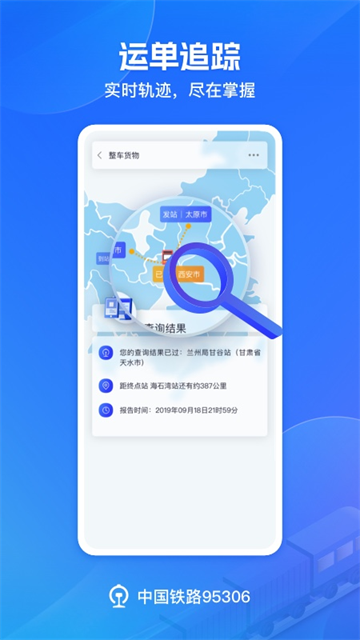 铁路95306是一款专业的铁路货物追踪软件,有着整车货物、散货快运、普通行包、集装箱等货物查询功能,当然也具备发货功能。可以查询到出发局、始发站、到达站、到局、日期、车次、速度等班列详细信息,多渠道受理货运需求。相关公告也会及时通知,确保专业的物流服务。有需要的话就赶快点击下载吧!