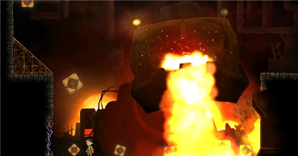 1、这一场boss战十分的简单,只需要我们不断靠左走,防止被履带被推到右边的熔炉当中