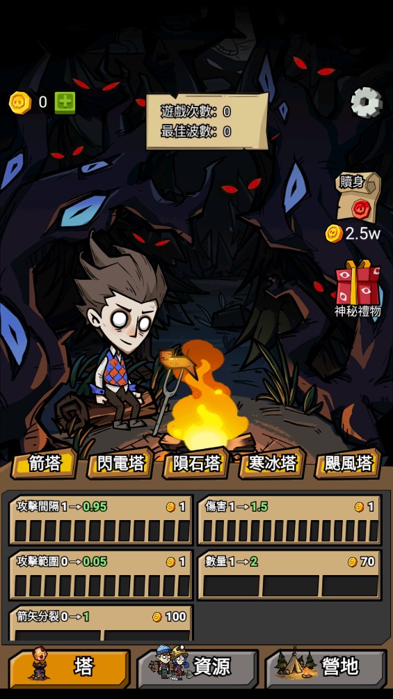 3、家园被摧毁则游戏结束并获得已采集的金币,可以在主界面升级和解锁防御塔、采矿效率或者营地等级