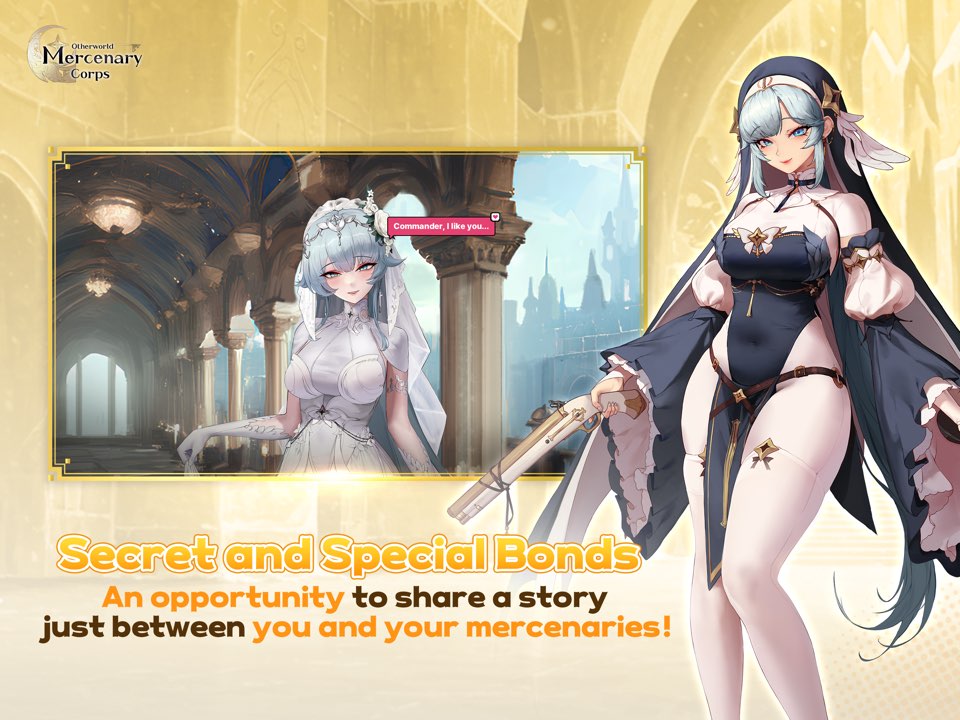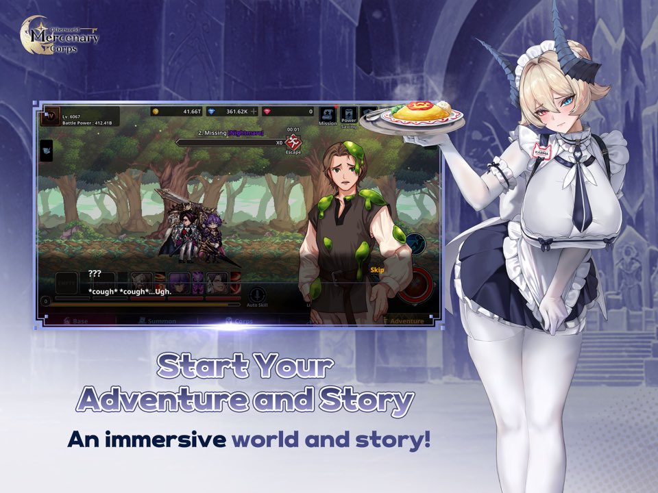 《 异世界佣兵团养成记》(Otherworld Mercenary Corps)是一款异世界冒险以及角色养成类的角色扮演游戏。游戏中,玩家作为一名普通的上班族,被召唤到神佑泰拉大陆上成为一名佣兵团长。玩家需要招募各式各样的英雄,对他们进行培养,编入自己的队伍,一起进行冒险和挑战,不断发展壮大自己的队伍。