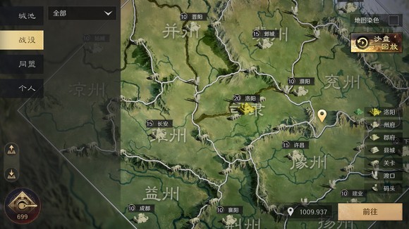 右上角“沙盘回放”会记录区服每天发生的事件,如同盟攻占城池、抽卡欧皇等。