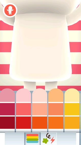 1、让我们开始吧,点击你的米尼来增添颜色、条纹、袖子还有裤子。