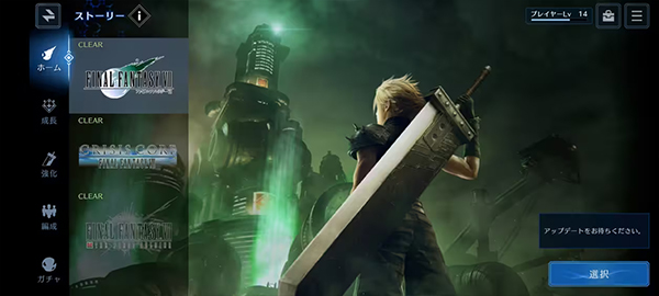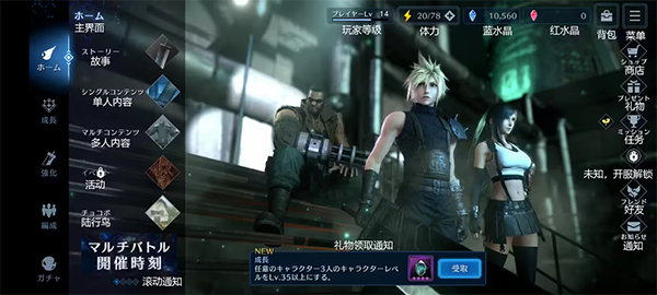 目前有FF7、CCFF7、FF7FS(居然没有地狱犬和危机前夕)。完成剧情所有人物都能获得经验,不消耗体力。剧情章节会随着游戏运营慢慢解锁,务必优先完成故事模式